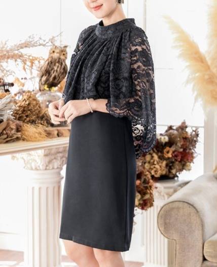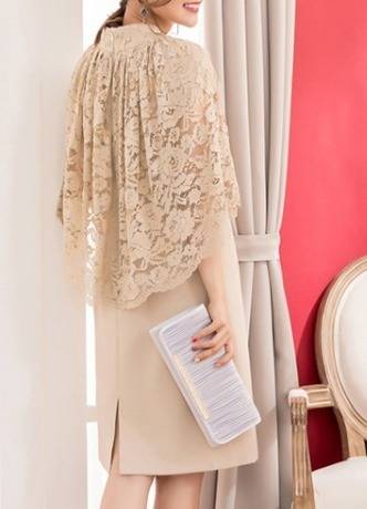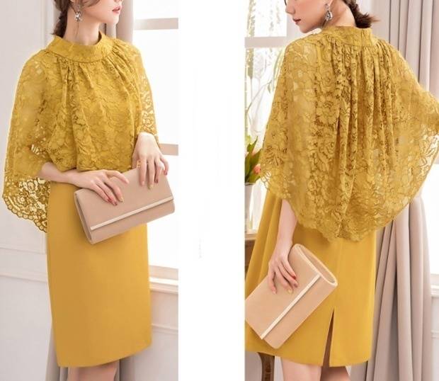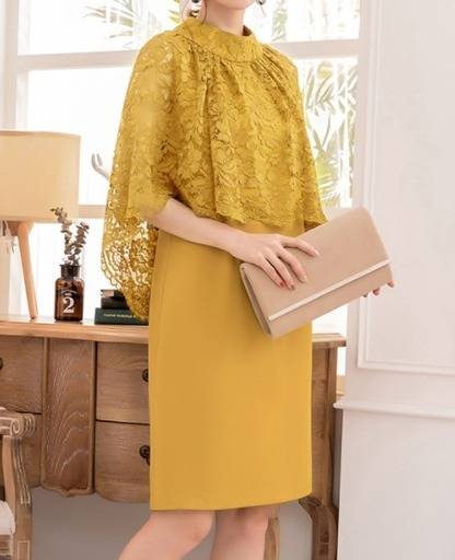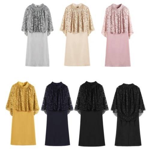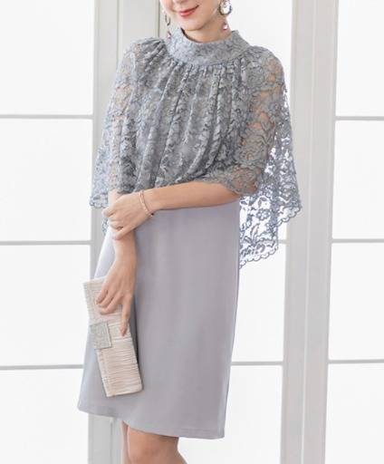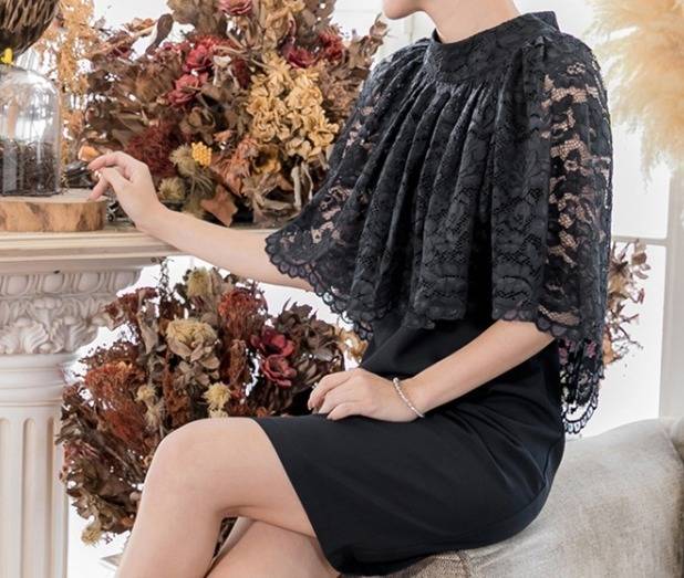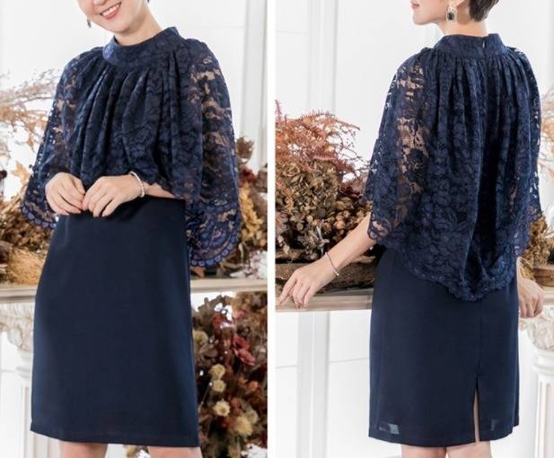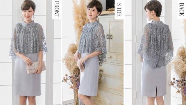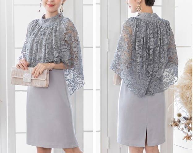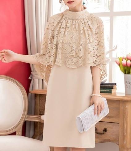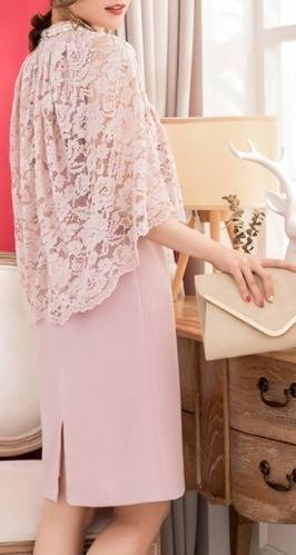 パーティードレス レース 花柄 ケープ風 6色 膝丈 フレア フリル タイト スリット エレガント パーティー 結婚式 二次会 お呼ばれ