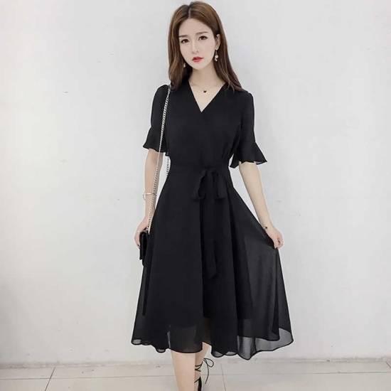 Vネック カシュワンピース フリルスリーブ ドレス パーティドレス 綺麗 おしゃれ 可愛い 上品 清楚 デート 結婚式 二次会 お呼ばれ