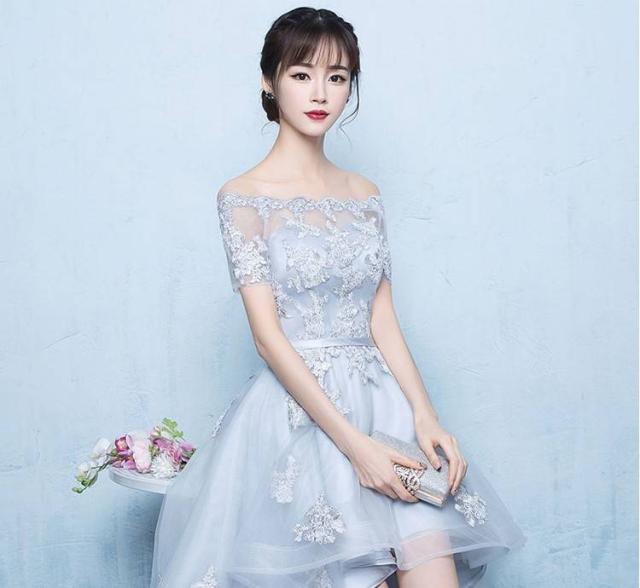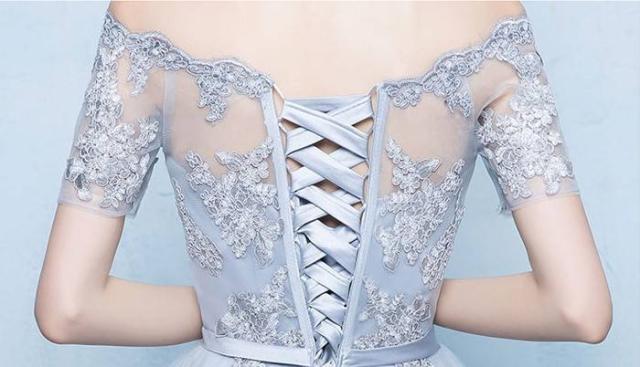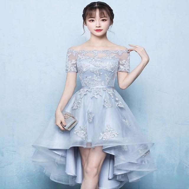 オフショル チュール フレア フィッシュテール シルバー パーティドレス ハイウエスト テール エレガント フェミニン 上品 レディース