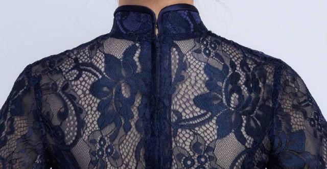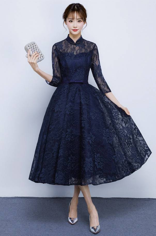 ロングドレス 演奏会 パーティードレス イブニングドレス 春夏 結婚式 二次会 披露宴 ネイビー 大きいサイズ ロング丈 ミモレ丈 半袖 袖あり Aライン Xライン フレア 刺繍 総レース 花柄 透け感 シースルー 立ち襟 20代 30代 フォーマル フェミニン ガーリー