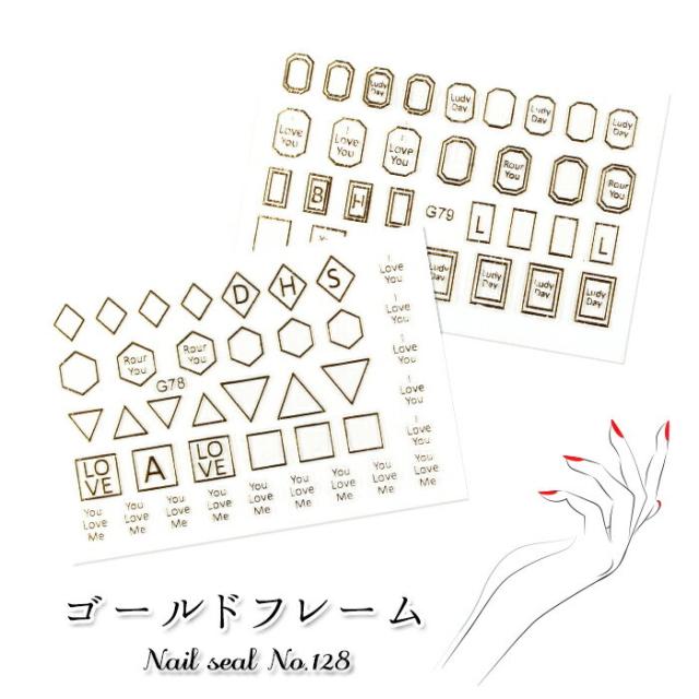 メール便 ネイルシール[128]ゴールドフレーム | ジェルネイル セルフネイル プチプラ ネイルシール ネイルステッカー ゴールド フレーム 英字 初心者 ネイル ネイル用品
