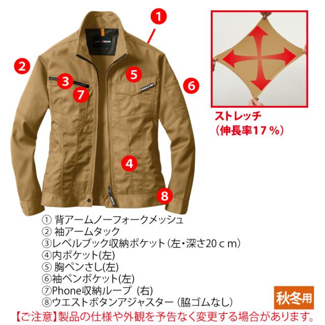 バートル BURTLE 作業着 1701 ジャケット(ユニセックス) SS-LL ストレッチ ユニセックス 静電ケア スタイリッシュ フィット 作業服 秋冬用