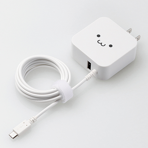 エレコム スマートフォン・タブレット用AC充電器 microBケーブル一体型 2.4A出力 USB-Aメス付 1.5m ホワイトフェイス MPA-ACM01WF 【北海道・沖縄・離島配送不可】
