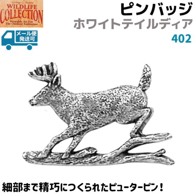 ピンバッジ ホワイトティルディア 402 ホワイトテイルディア 3.3×2.2cm 白鹿 ホワイトテールディア シカ しか ピンズ バッチ スズ シルバー ピューター かわいい 可愛い ブローチ バッジ バッヂ キャッチ 留め具 金具 GEORGE G.HARRIS メール便発送可 ポイント消化
