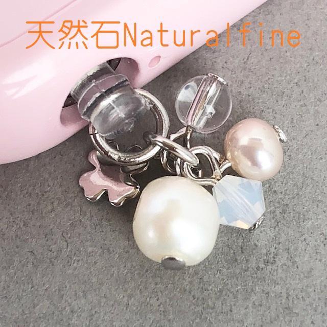 淡水パールのホワイトとピンク淡水パール、天然水晶とスワロフスキーのイヤホンジャックです。