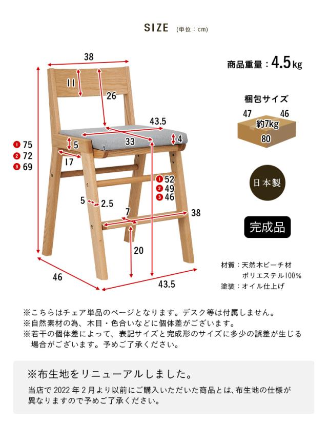 [国産/完成品/天然木ビーチ材使用/高さ調整機能] 学習椅子 学習チェア SPICA(スピカ) ビーチ 4色対応 日本製 勉強椅子 勉強チェア デスクチェア リビングチェア 椅子 イス いす 木製 子供部屋 学習いす 学習イス 杉工場 (大型)