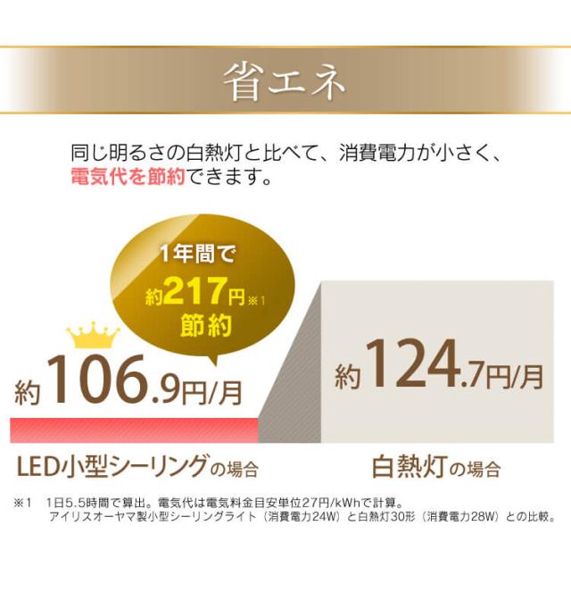 LEDシーリングライトは蛍光灯と比較すると消費電力が低く、年間の電気代がお得です。