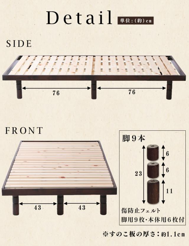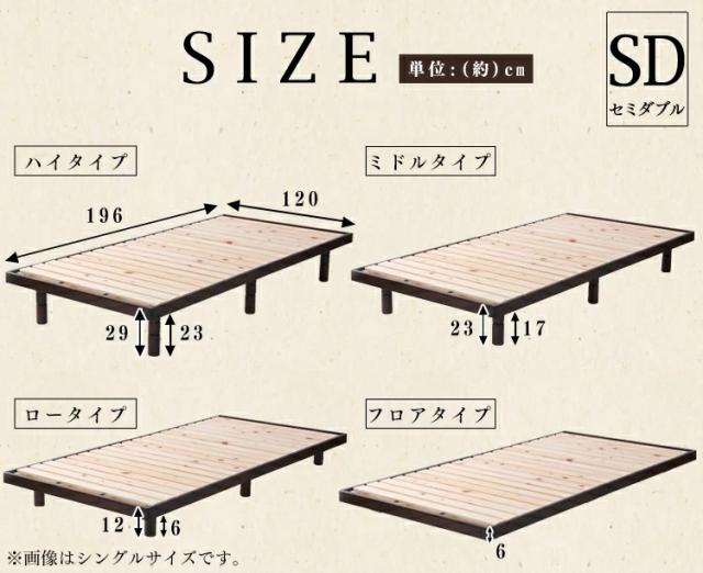 ベッド セミダブル すのこベッド ひのき 4段階高さ調整すのこベッド SD SB-4SD スノコベッド セミダブルベッド 天然木パイン材 ローベッド 高さ4段階 高さ調整 高さ調節 木製 シンプル ベッド 送料無料 【int】