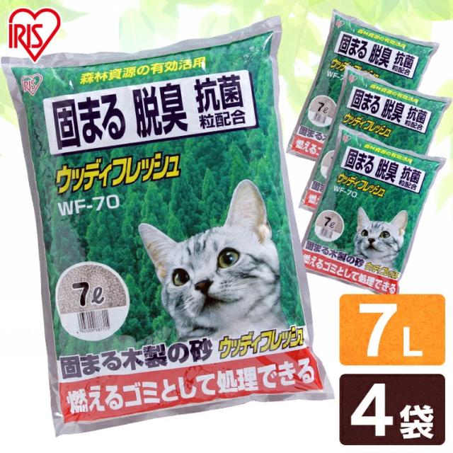 【4袋セット】猫砂 木 ウッディフレッシュ 7L WF-70 ネコ砂 ねこ砂 固まる 燃やせる 抗菌 抗菌粒 トイレ トイレ用品 アイリスオーヤマ 送料無料