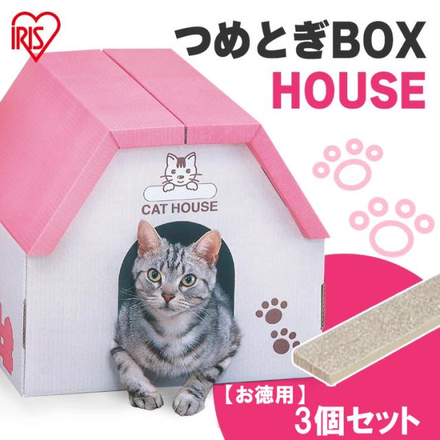 【3個セット】爪とぎ 猫 つめとぎBOXハウス TTB-410H 猫の爪とぎ アイリスオーヤマ スクラッチャー ストレス 解消 ペット用品 爪磨き 爪みがき 段ボール