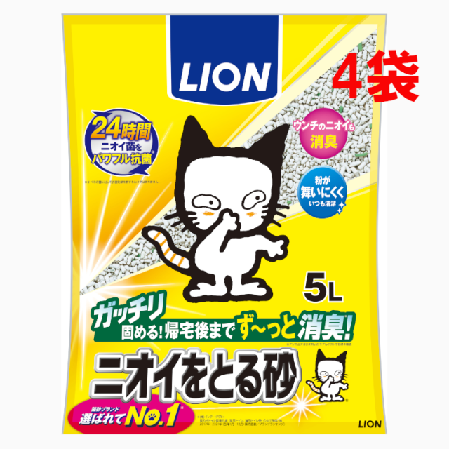 猫砂 ベントナイト LION ライオン ペットキレイ ニオイをとる砂 5L×4袋セット ベントナイト 脱臭 抗菌 Agイオン 消臭 強力消臭 ねこ砂 ネコ砂 ねこ ネコ 猫