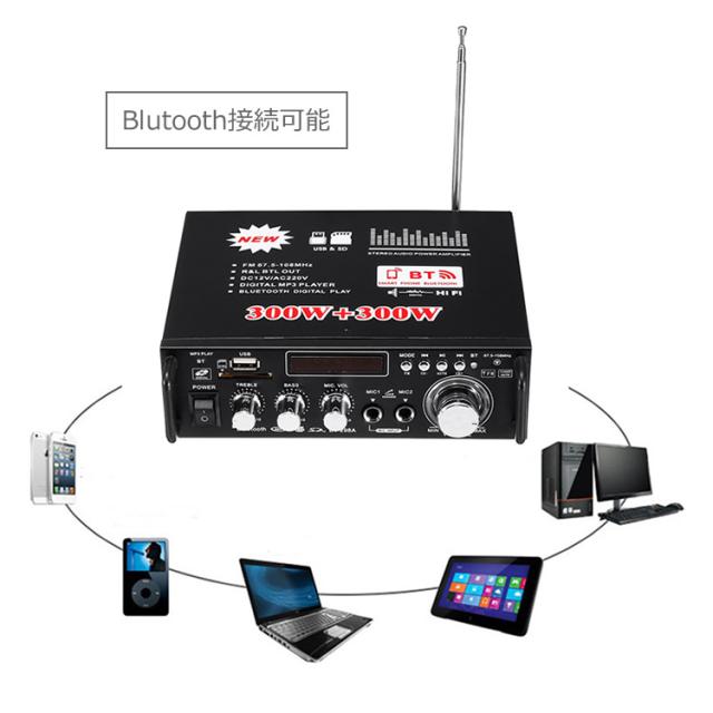 デジタルアンプ オーディオアンプ 最大出力600W(300W+300W) ハイパワー 高音質 重低音調整 USB/SD/Blutooth LP298A