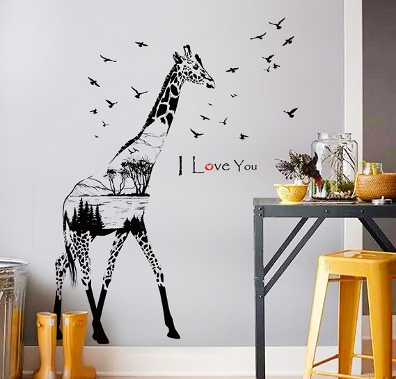 ウォールステッカー キリン Love 壁紙シール ナチュラル 動物 アフリカ 砂漠の雰囲気 黒基調 はがせる 麒麟のインテリアデカール
