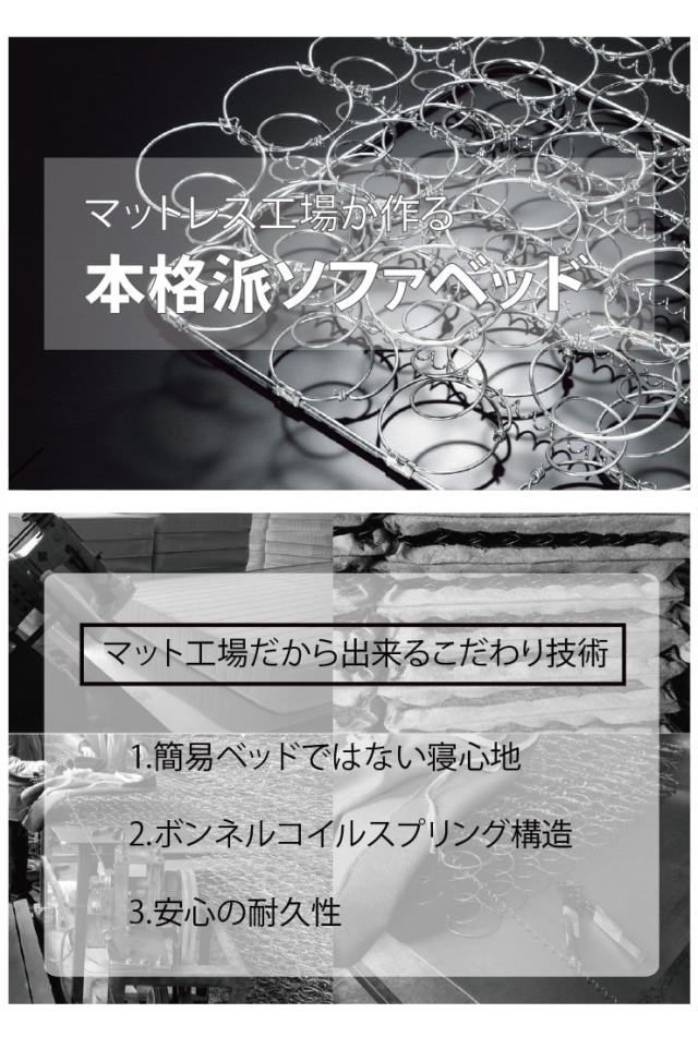 眠りにこだわったマットレス工場だから出来るボンネルコイルスプリングをソファーベッドに採用し、ベッドと同様の寝心地を実現しました。