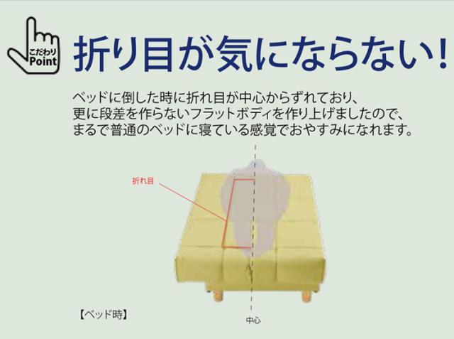 ベッドを倒した時に折り目が中心かたずれており更に段差を作らないフラットボディを作り上げましたので、まるで普通のベッドに寝ている感覚でお休みになれます。