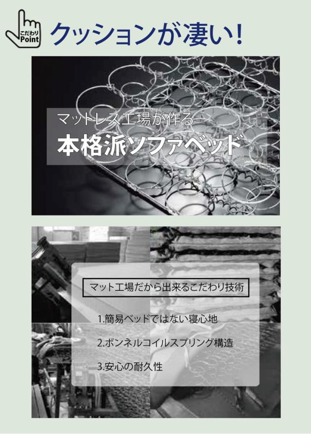 眠りにこだわったマットレス工場だから出来るボンネルコイルスプリングをソファーベッドに採用し、ベッドと同様の寝心地を実現しました。