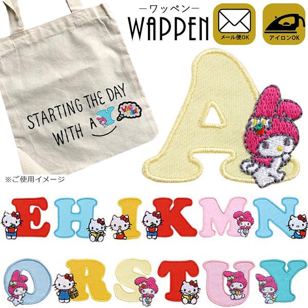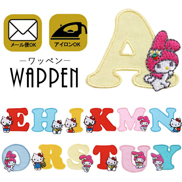 ハローキティ マイメロディ アルファベット ワッペン キャラクター サンリオ 刺繍 アイロン接着 アイロンワッペン 正規品 母の日 プレゼント ギフト