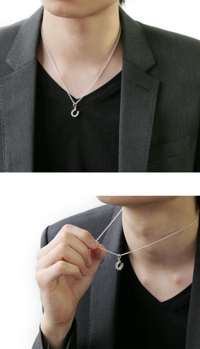 ■商品名:ジルコニア ホースシュー ペンダント ネックレス メンズ (2mmアズキチェーン付きセット) 馬蹄 シルバー925 アクセサリー シルバーペンダント