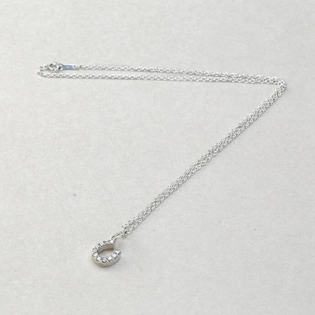 正面全てにジルコニアが敷き詰められたホースシュー(馬蹄)ペンダント。バチカンを1箇所のみにしたことによりペンダントトップが揺れやすく、その度ジルコニアが輝く為、小さめながら存在感を発揮します。きれいめな服装との相性も抜群で、コーディネートにアクセントを添えてくれます。