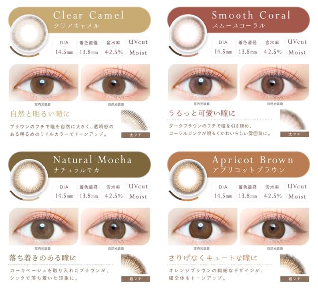 ひとめぼれの恋/くぎづけの心/クリアキャラメル/パールベージュ/スムースコーラル/ナチュラルモカ/アプリコットブラウン/クラシックチーク: