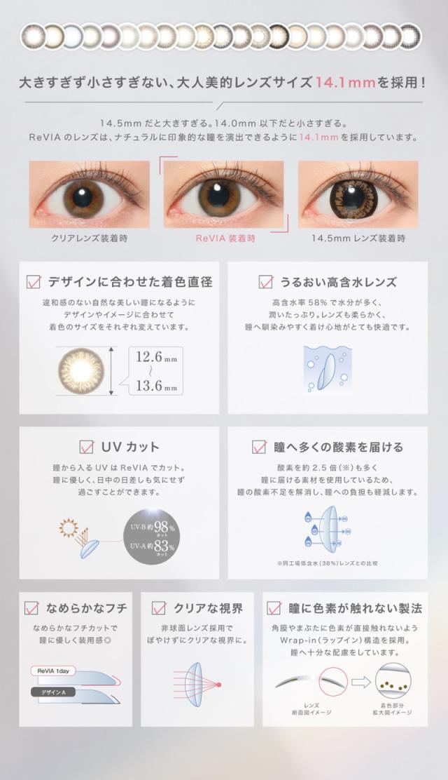 レヴィア ワンデー カラー 1箱10枚(メール便送料無料)【カラコン ワンデー】14.1mm 1day 度あり 度なし ローラ ROLA ReVIA
