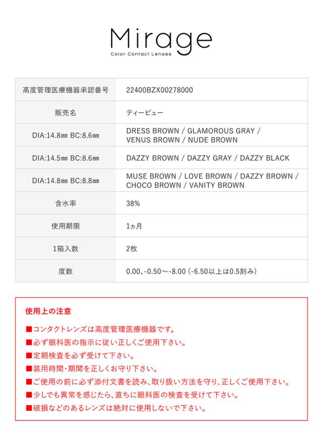ミラージュ 1箱2枚(メール便送料無料) 14.5mm 14.8mm 1month 度なし 度あり mirage みみれむ姉妹 カラーコンタクト
