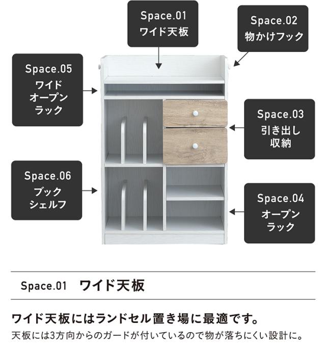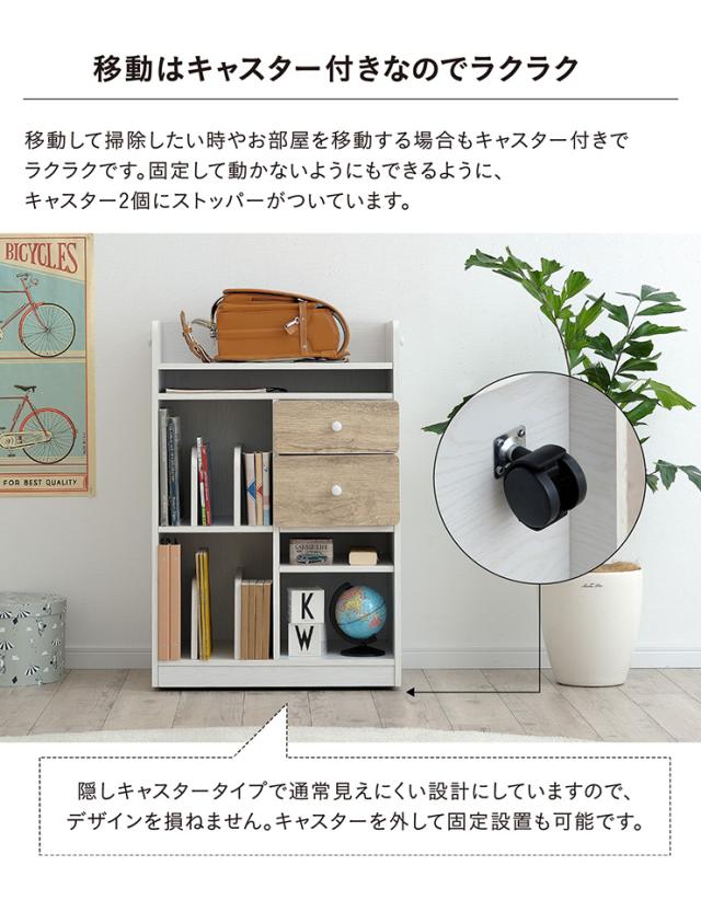 【可動式棚/物かけフック/キャスター付き】幅64cm ランドセルラック LOG(ログ) 5色対応 ランドセル収納 リビングラック スリム 木製 おしゃれ 子供部屋 2人用 大容量