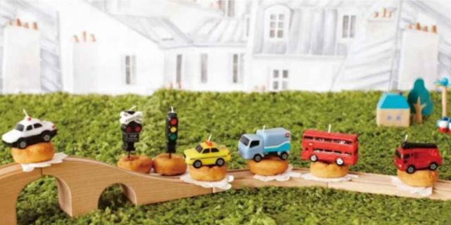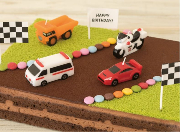 リアルに再現されたトミカのキャンドルでケーキをデコレーション