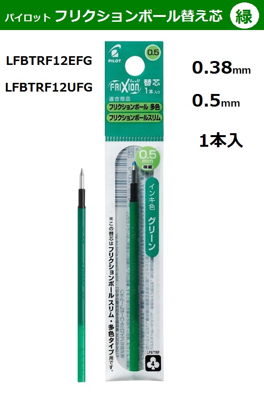 フリクションボール 替え芯 LFBTRF12EF 12UF グリーン 緑 1本 143円 038 05mm パイロット ボールペン 替芯 長さ 87.5mm フリクションボールペン メール便 OK