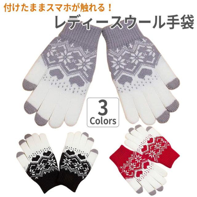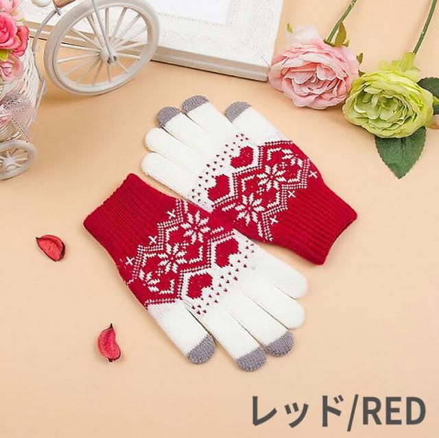 手袋 レディース 防寒 赤 暖かい ウール おしゃれ スマホ タッチパネル