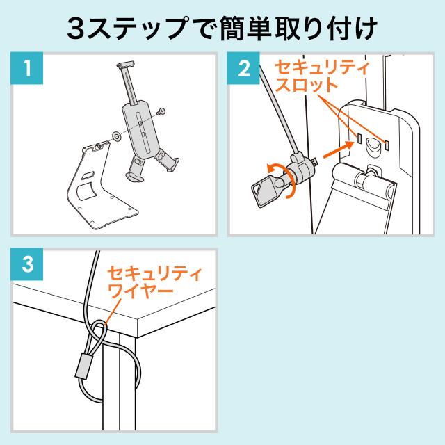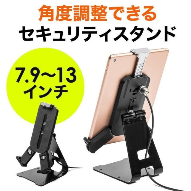 タブレット セキュリティスタンド 7.9インチ〜13インチ対応 盗難防止ワイヤー 2m[200-SL057]