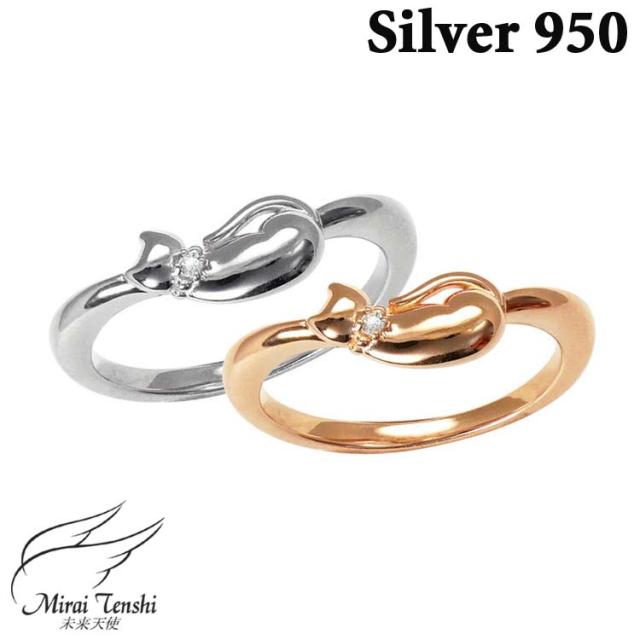 未来天使 Mirai Tenshi ダイヤモンド ネコの添い寝 シルバー リング 指輪 7号〜17号 キャット にゃんこ MIR-2138D