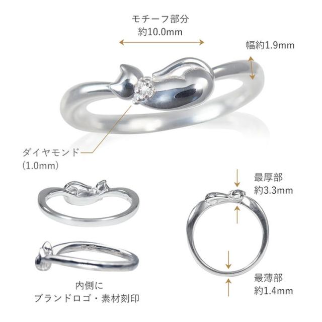 可愛いネコモチーフながら着けやすい綺麗なデザインに仕上がっており、大人の女性にもピッタリなリングです。