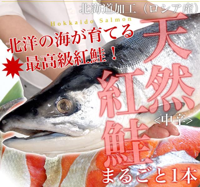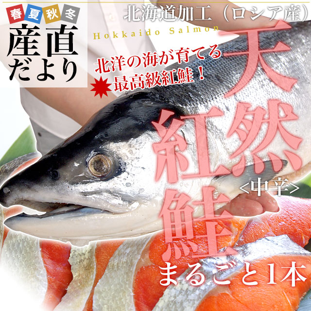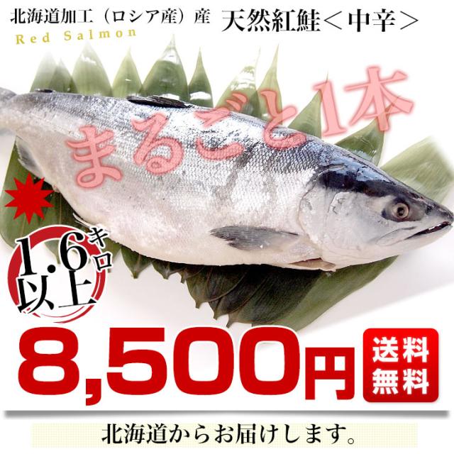 北海道より直送 北海道加工 天然紅鮭 <中辛> まるごと1本 1.6キロ以上(ロシア産) 送料無料 紅鮭 べにさけ シャケ お歳暮 冬ギフト 【発送時期:カート内に記載しております】