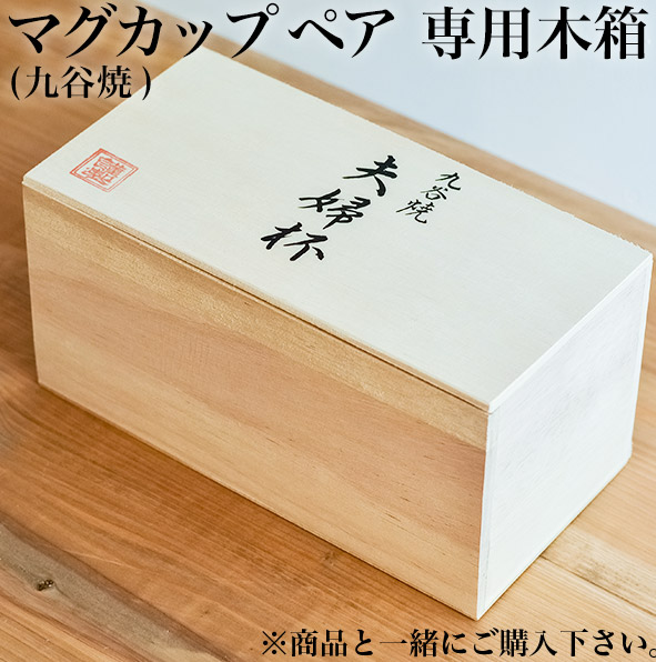 当店(伝統本舗)で販売している「九谷焼のマグカップ ペア」商品を、「木箱入り」に変更出来ます。大切な贈り物に、より上質感をプラスしていただけます。ご希望の商品と一緒にカートへ入れてご注文ください。
