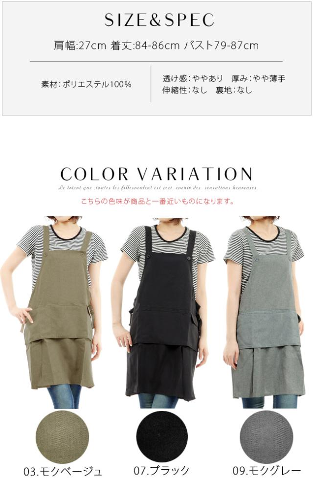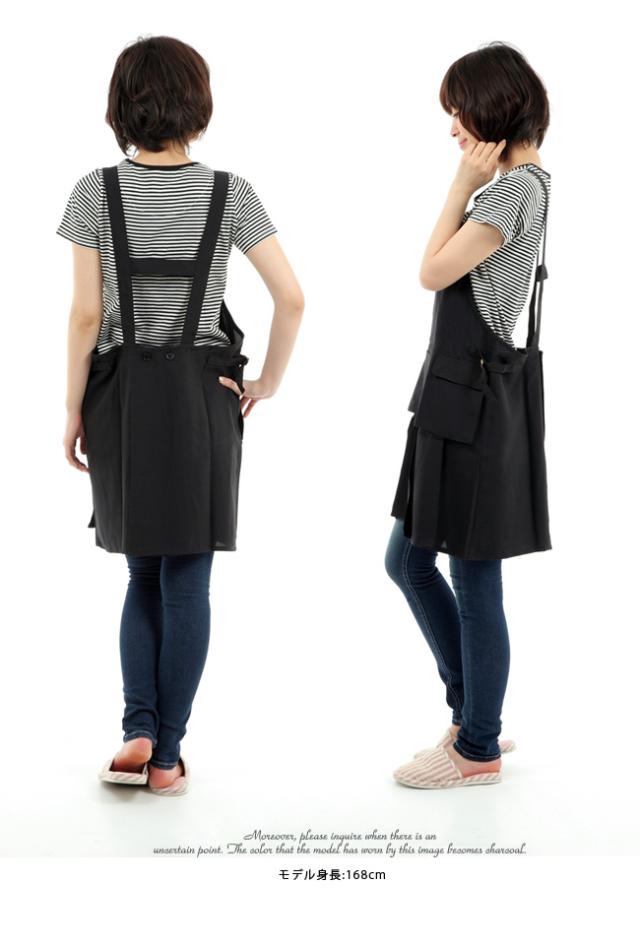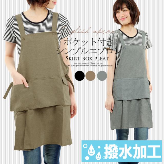 ポケット付きシンプルエプロン チュール フリルエプロン エプロン ノンアイロン 無地 黒 母の日 撥水 撥水加工 【メール便発送】