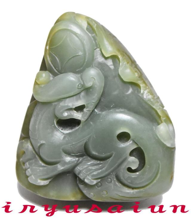 商品名:開運風水天然玉石手彫り睚眦(ヤアズ・ヤーズ)根付(和田玉)