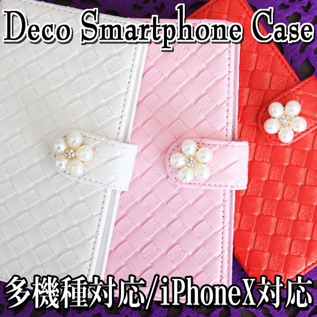 スマホケース 手帳型 全機種対応【メッシュ風スマホケース×パールフラワー】メール便送料無料 受注生産