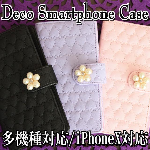 スマホケース 手帳型 全機種対応【ハートのキルトスマホケース×パールフラワー】メール便送料無料 受注生産