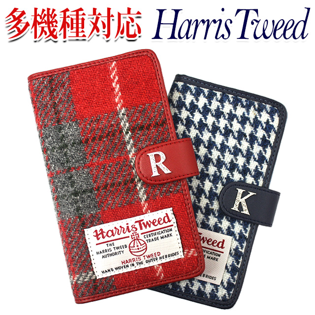 スマホケース 手帳型 多機種対応【ハリスツイードA(イニシャルパーツ付き)(廃盤につきアウトレット品)】メール便送料無料 受注生産