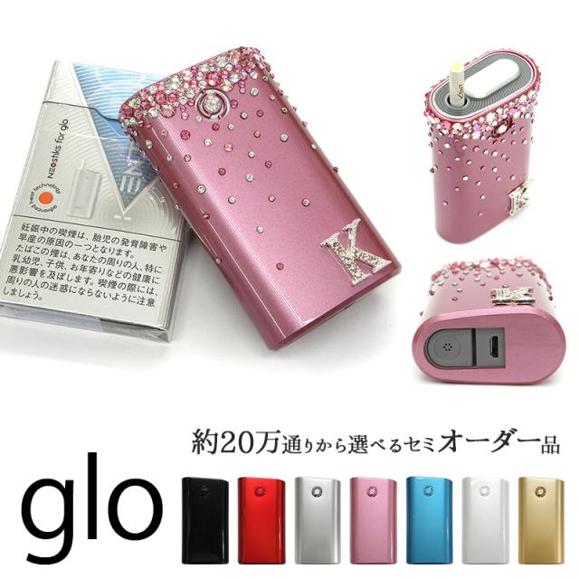 グロー ケース グローケース【メタリック風ハードケース×高級クリスタル】glo カバー たばこ タバコ ネオスティック タバコヒーター 電子タバコ 喫煙 禁煙 ハードケース デコ キラキラ イニシャル アルファベット 可愛い かわいい オーダー ギフト 送料無料 受注生産