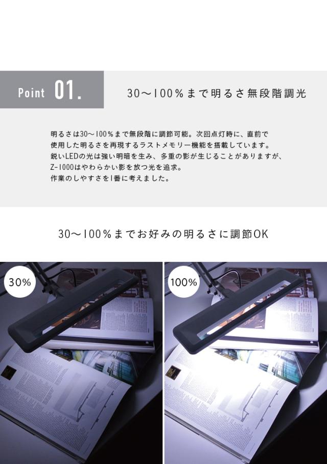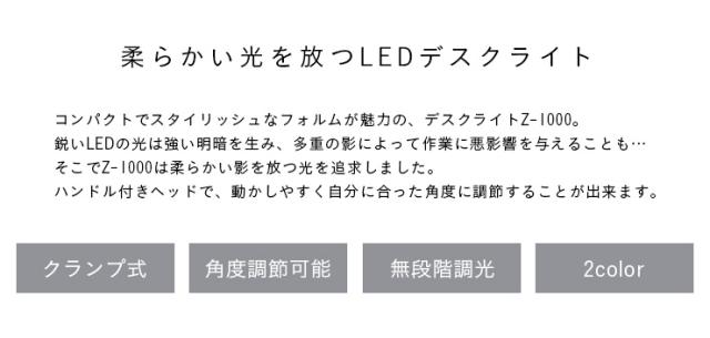 [無段階調光/角度調整機能] Z-light クランプ式 LEDデスクライト Z-1000 ブラック/ホワイト アーム デスクライト 学習デスク用 学習机用 パソコンデスク用 デスク照明 オフィスデスク 照明 子供 大人 おしゃれ
