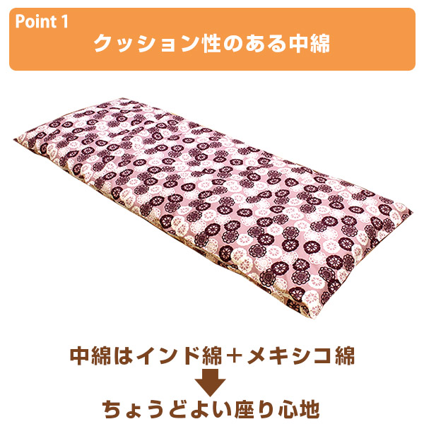 中わたには、こしが強くしっかりとしたインド綿とクッション性がありソフトなメキシコ綿を組み合わせているから心地よい座り心地です。