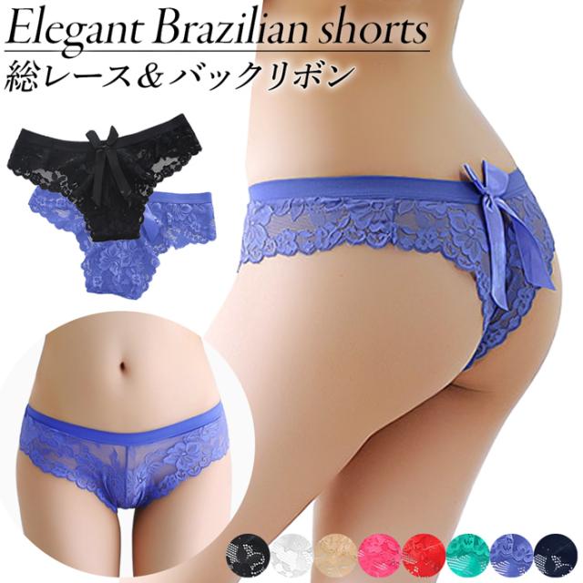 Tバック レディース ブラジリアンショーツ 総レース ストレッチ バック 大きい リボン ハーフバック 花柄 透け感 セクシー かわいい 女性 ランジェリー 1515 プレゼント ギフト 母の日 父の日 敬老の日 バレンタイン ホワイトデー クリスマス