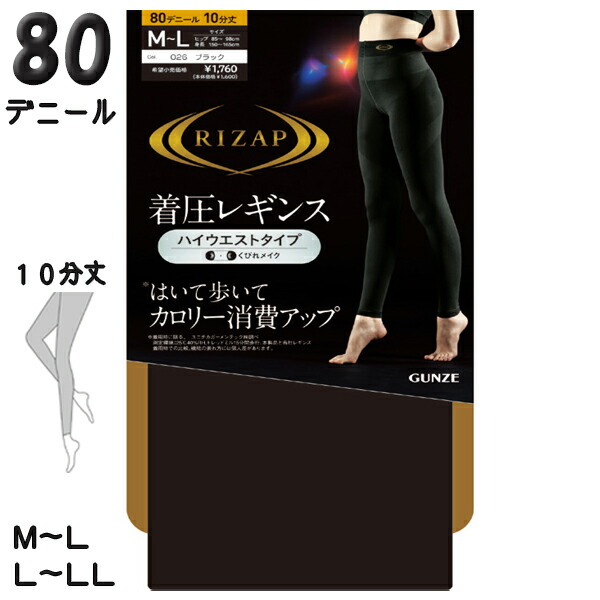 グンゼ ライザップ レギンス ハイウエスト 10分丈 80デニール 着圧 M-L/L-LL | カロリー消費アップ マチ付き 美脚 ナイロン スパッツ レディース インナー RZF203 GUNZE RIZAP