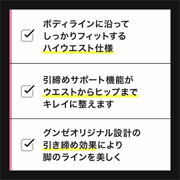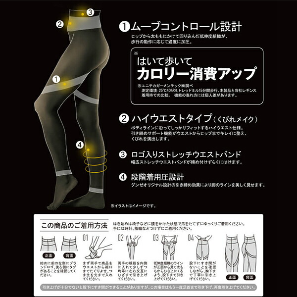 グンゼオリジナルの設計の引き締め効果により脚のラインを美しく見せます。