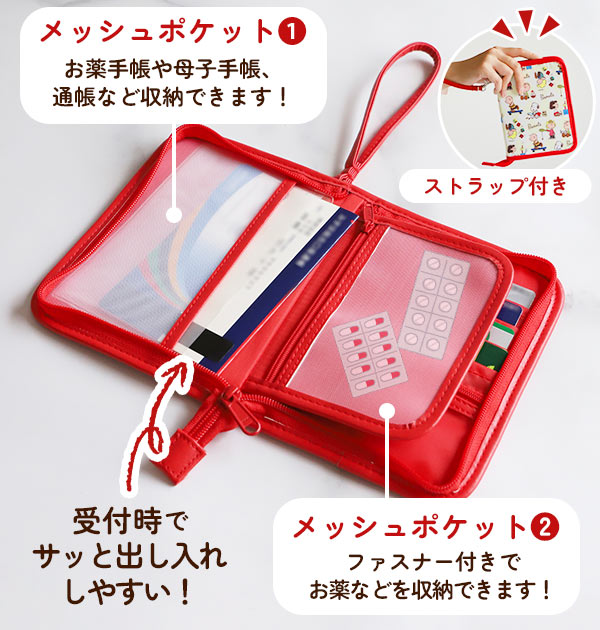 | 商品説明 | ミニタイプのマルチケースです。中身が見えるファスナー付きメッシュポケット!ポケットをめくると更に収納スペースがあります。カード4室、ファスナーポケット!保険証や母子手帳、診察券をまとめておけばお出かけの時もラクチン♪持ち運びに便利なストラップ付き♪ |