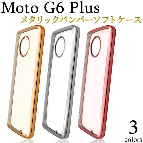 Moto G6 Plus用 メタリックバンパー ソフトクリアケース モトローラ モトG6plus用 SIMフリー携帯 シンプル お洒落 スマートフォンケース
