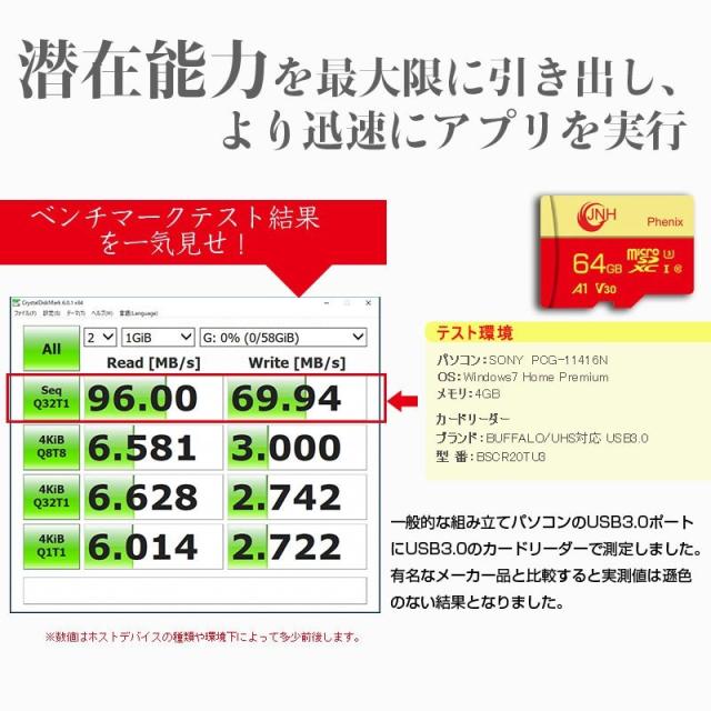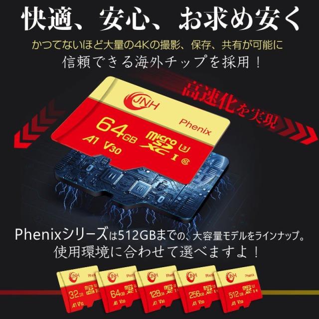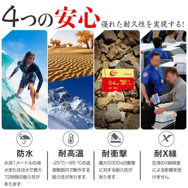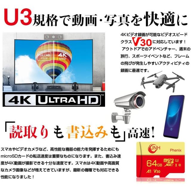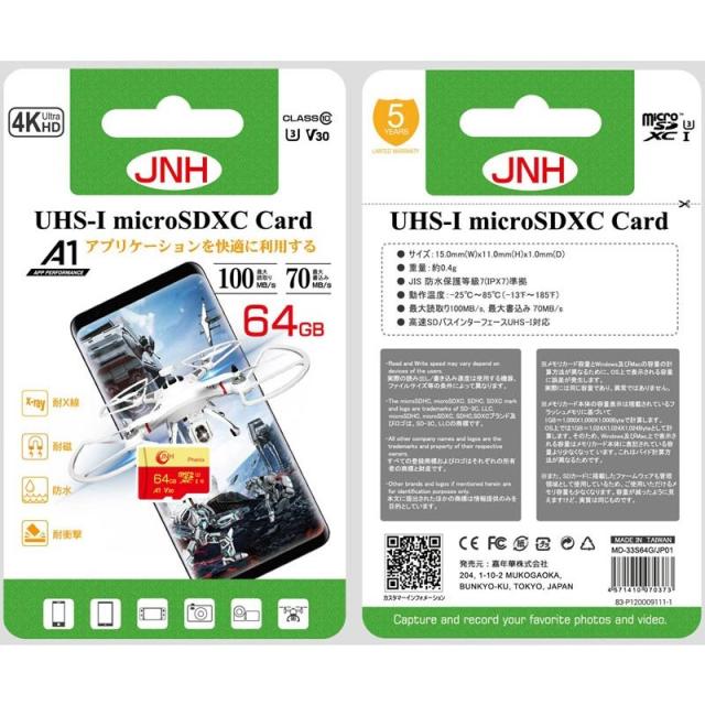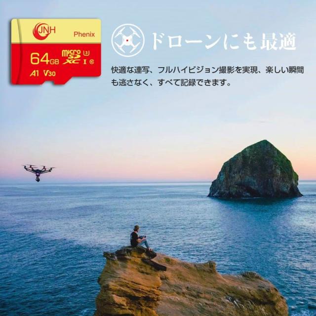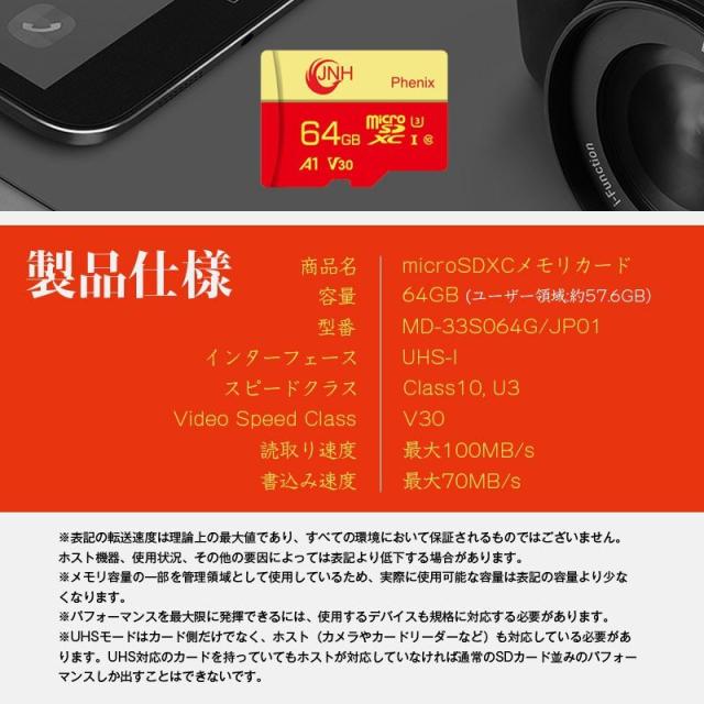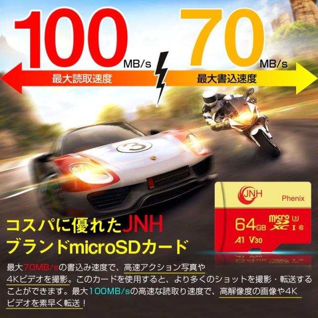 microSDXC 64GB JNHブランドR:100MB/s W:70MB/s Class10 UHS-I U3 V30 4K Ultra HD A1対応 国内正規品5年保証 Nintendo Switch/GoPro/Insta360動作確認済 ポイント消化