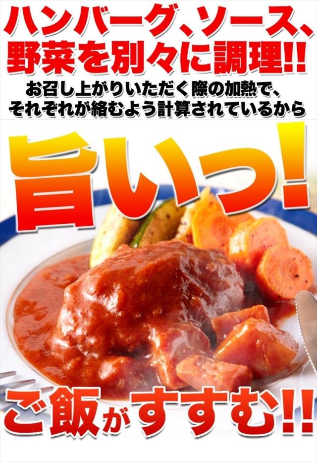 - 思っていたよりハンバーグが小振りです。 野菜は入っていましたが野菜の味はなく柔らかすぎに感じました。 味もスーパーの安めの真空パックで売っているハンバーグに似た感じでした。